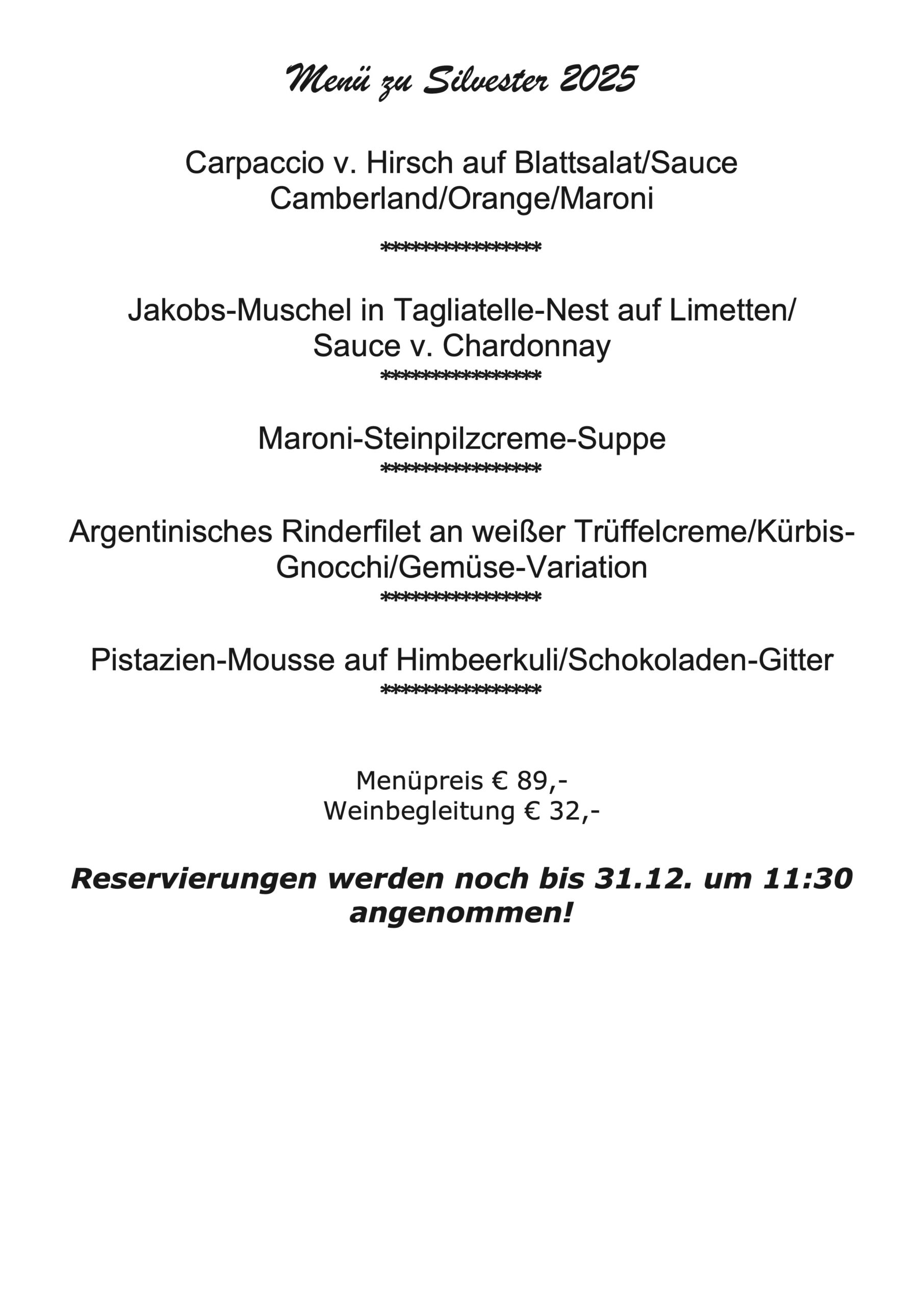 Unser Restaurant ist wieder ab dem 25. Dezember 2025 ab Mittag geöffnet!